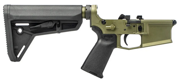 The Aero Precision Complete Lower Receiver M4E1 is designed for compatibility with M4E1 and AR15 components and magazines. This semi-complete lower receiver features a durable Kodiak Brown anodized finish, an MOE grip, and an SL carbine stock in OD Green. Ideal for custom builds and upgrades.