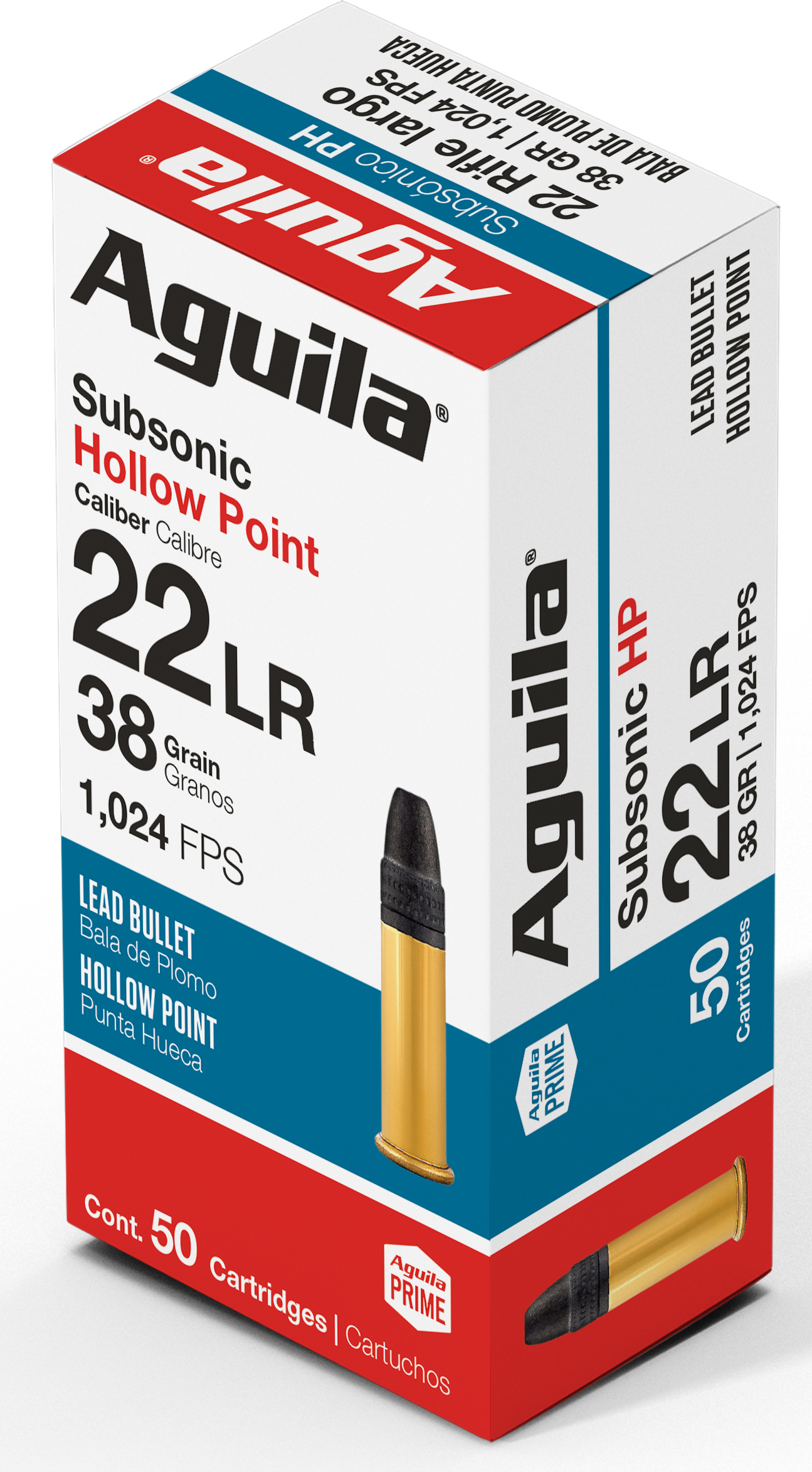 Aguila Subsonic HP 22LR 38GR 50/20 – Precision Hollow Point Ammunition, Model AGU SUBSONIC HP, UPC 640420009506