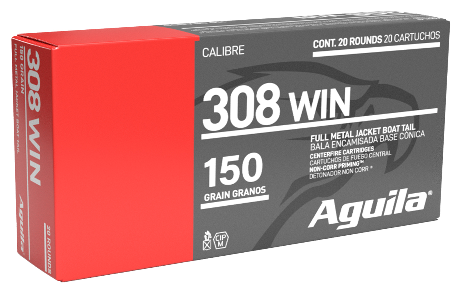 Aguila 1E308110 Target & Range Rifle Ammunition, 308 Win, 150 Grain Full Metal Jacket Boat Tail, UPC: 640420003306