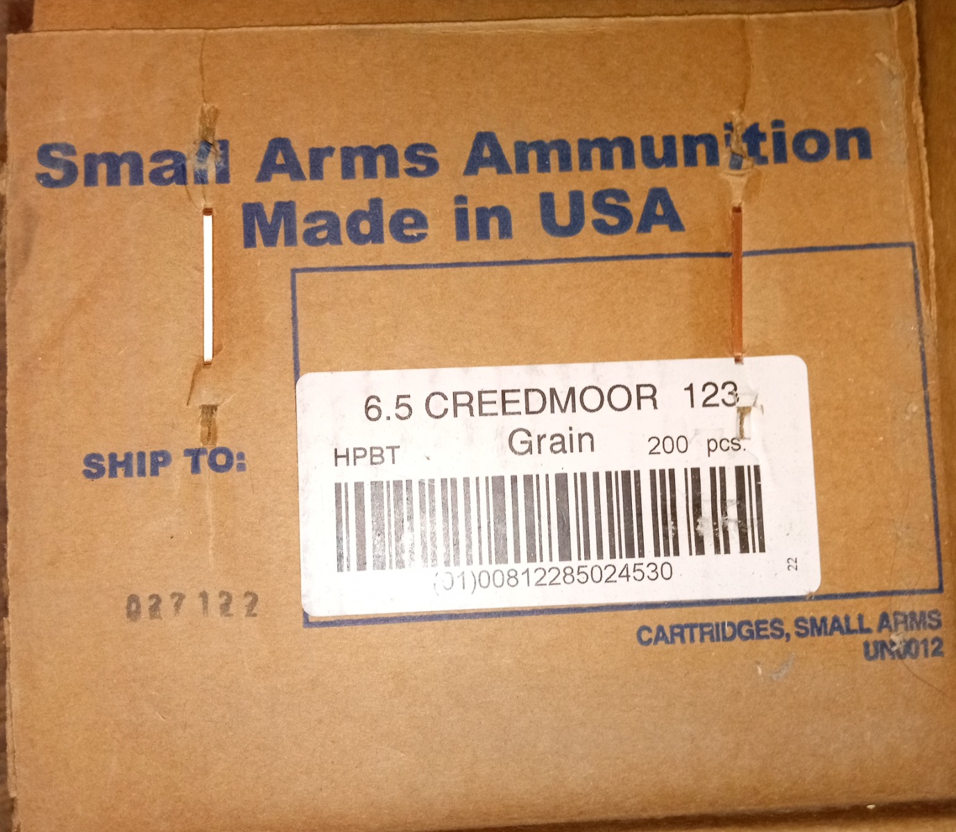 Caliber: 6.5 Creedmore Bullet Type: HPBT Grain Weight: 123gr Velocity FPS: 2750Armscor FAC65C-1N 6.5 Creedmoor 123gr HPBT Rifle Ammo 200rd Case