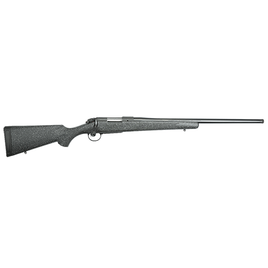 Although there are many rifles on the market today we wanted to focus on one thing: quality. Our B-14 rifles were inspired by the desire to bring the quality that Bergara was known for in the custom rifle world to production rifles made for all hunters. In the B-14 rifle you will find a level of craftsmanship that surpasses all of the other production hunting rifles on the market. – The B-14 Ridge rifle features a molded synthetic stock made of glass fiber reinforced polymer. As with the entire B-14 Series the Ridge brings Bergara Barrel accuracy to a line of hunting rifles that is affordable to serious big-game hunters. Built in Spain at our highly automated and efficient barrel factory this rifle delivers a level of quality and performance that is unmatched in its price range. – The world-renowned Bergara barrel on this rifle for hunting whatever your heart desires is complemented by our own super-smooth B-14 Action which is a two-lug system with a sliding plate extractor and a coned bolt nose and breech to ensure a smooth feeding and extraction of the cartridge. It’s also outfitted with a Bergara curved trigger we designed to guarantee a crisp clean pull every time you fire the rifle. It has been factory drilled and tapped to fit Remington 700 style rings and bases. – The Bergara Ridge comes with a #5 4140 CrMo steel barrel finished in matte blue. Our stocks are bedded with integral pillars for stability and enhanced accuracy. The barrel is threaded 5/824 to accept muzzle brakes or suppressors. – During the molding process solid epoxy pillars are permanently molded into place providing a secure and stable bedding surface for the barreled action. The base color is dark gray with white and black flecks. A SoftTouch coating gives the stock soft tacky feel that is easy to grip even in harsh weather. – Weight: 7.4-7.7 lbs. – Overall Length: 39.5-44 – Barrel Length: 20-24 – Barrel Taper: No. 5 – Muzzle: Threaded 5/8-24 with thread protector – Finish: Matte Blued – Magazine: Hinged floor plate – Magazine Capacity: 4 standard 3 magnum 2 round: 300 PRC 6.5 PRC – Stock: American-style synthetic with SoftTouch finish – Scope Mount: Fits Remington 700 bases with 6-48 screws – Bottom Metal: Standard with Floor plate. Convertible to detachable magazineBGA B-14 Ridge 300PRC 24 Synthetic Threaded Heavy Barrel
