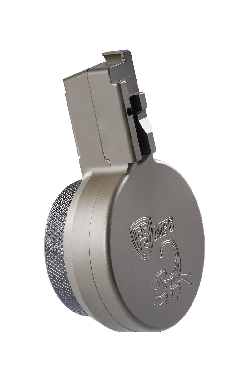 The only 50-round drum magazine for the CZ Scorpion on the market! Compatible with pistol and carbine models chambered in 9mm. Components are precision machined from billet aluminum and protected with Cerakote.F5 EVO9MM-OD CZ Scorpion 9mm 50-Round Drum Magazine OD Green