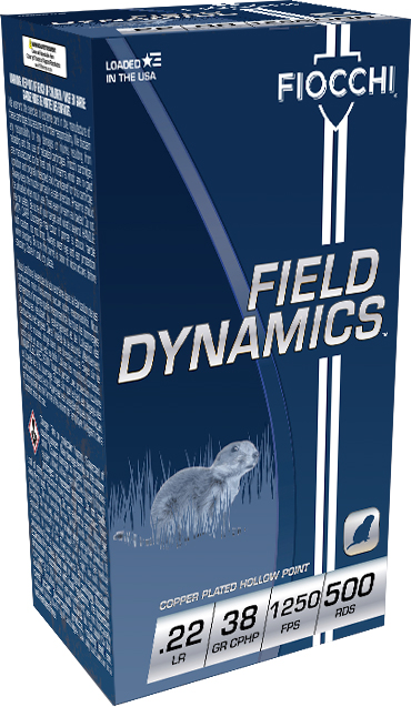 Fiocchi 22FHVCHP Field Dynamics High Velocity .22LR Copper Plated Hollow Point 38gr – 50 Rounds Per Box