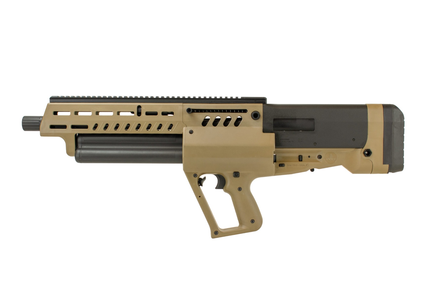 The IWI US TS12F is a versatile and reliable semi-automatic shotgun designed for performance and ease of use. Featuring a compact 18.5″ barrel and a 15-round capacity, this bullpup shotgun is perfect for tactical applications and home defense. Its FDE finish adds durability and a modern aesthetic.